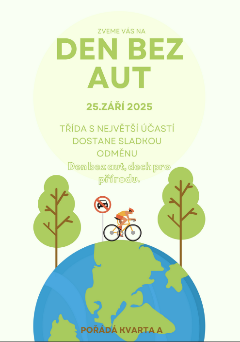 U nás na škole jsme letos tuto akci organizovali my, kvarta A. Počasí nám házelo klacky pod nohy. V den akce, ale i celý předchozí den, pršelo, a tak jsme museli změnit naše plány. Třeba namísto kola z Kuřimi zvolila většina studentů jiný dopravní prostředek – vlak. Ten sice nepředstavuje zcela "zelený" dopravní prostředek, přesto jsou ale jeho dopady na životní prostředí mnohonásobně menší než u automobilů, a je tedy považován za ekologický.
